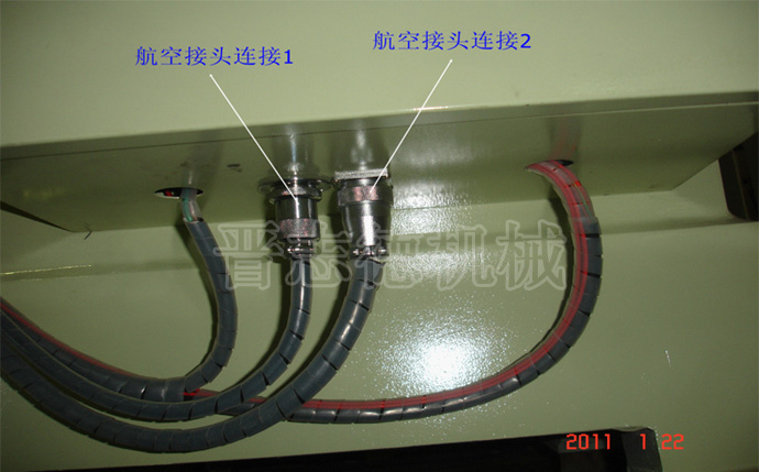 ?、趫D(二)、當機架拆裝后,此航空接頭連接1、2會被移位,當機架重新定位安裝后,只需將此連接處的航空插頭對照原孔位安裝就好,簡單方便。