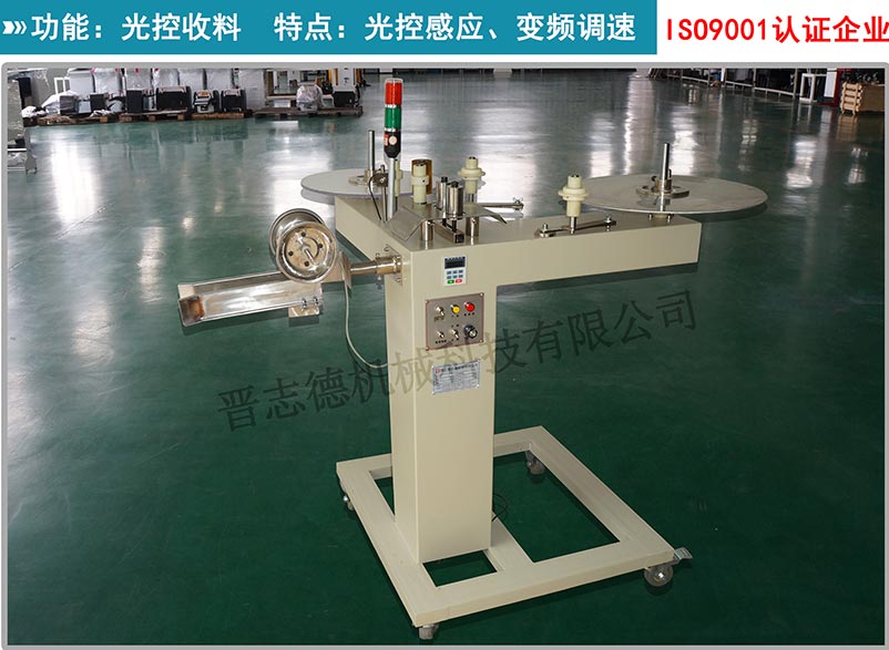 1、單盤臥式端子光控收料機采用單層單盤光控收料方式,適合收取表面要求高的單條端子料帶臥式收料,不會壓傷端子產品,且收料均勻整齊,同時電控部分采用光電開關與變頻器配合,速度均勻穩定,端子產品不易變形,性能穩定可靠。。